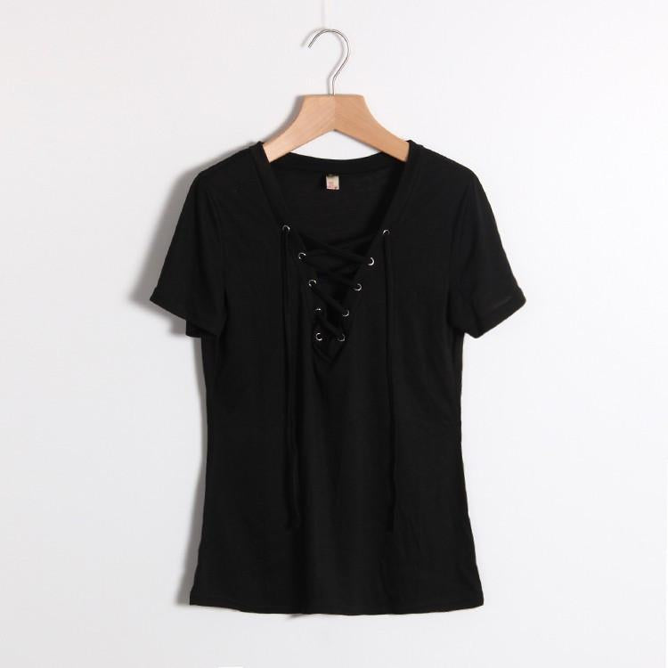 Summer Fashion Short Sleeve Sexy Deep V Neck T-shirt For Women